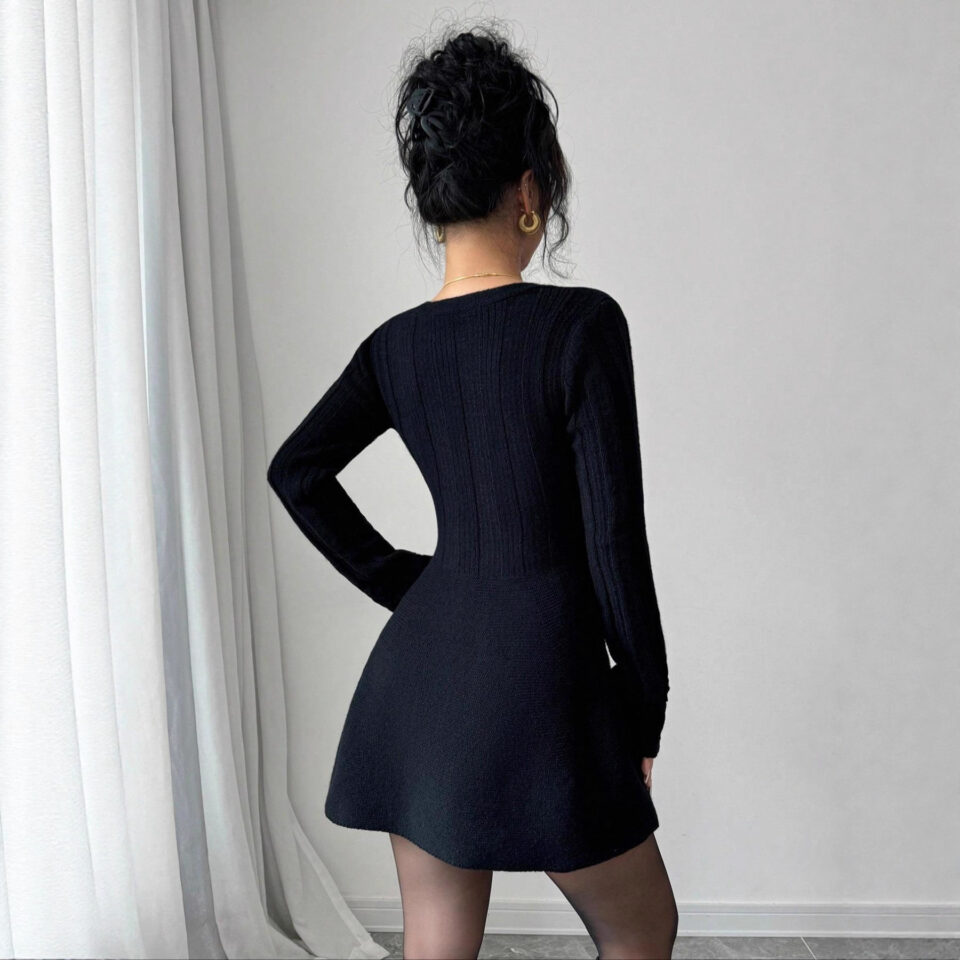 Women’s Solid-Color V-Neck Knitted Dress