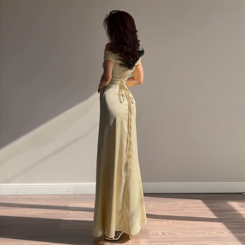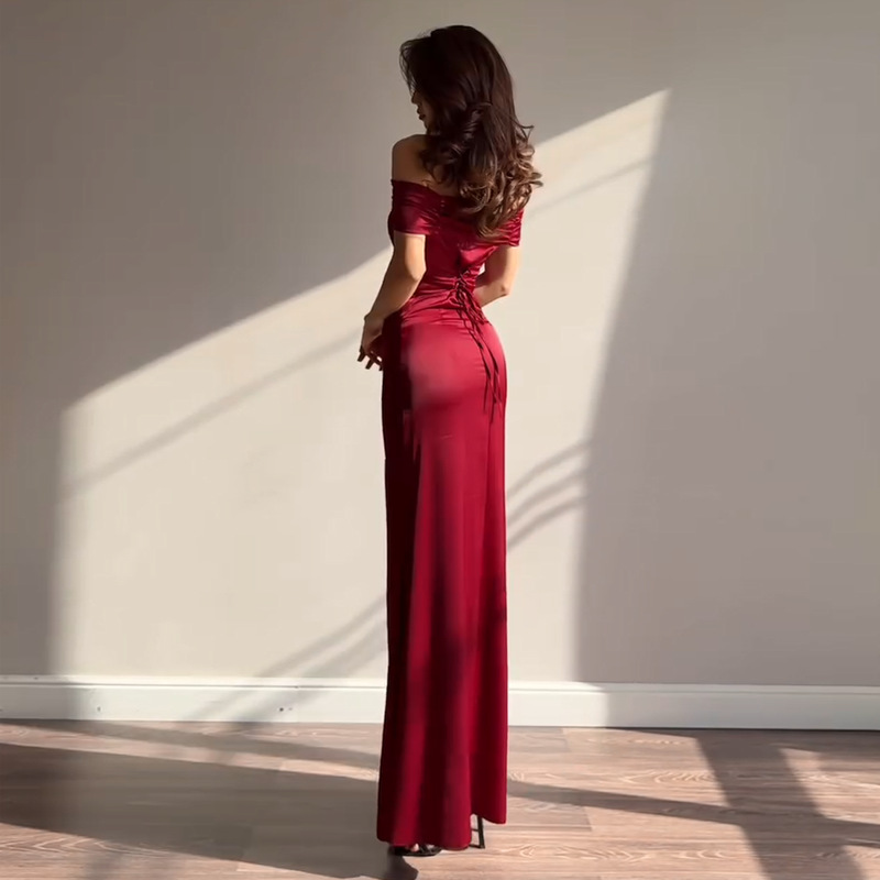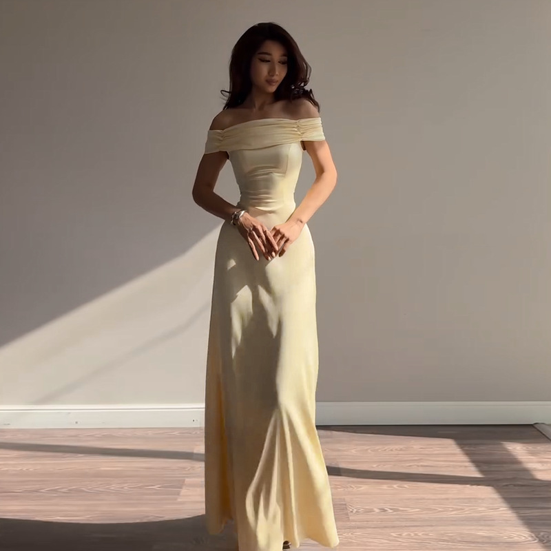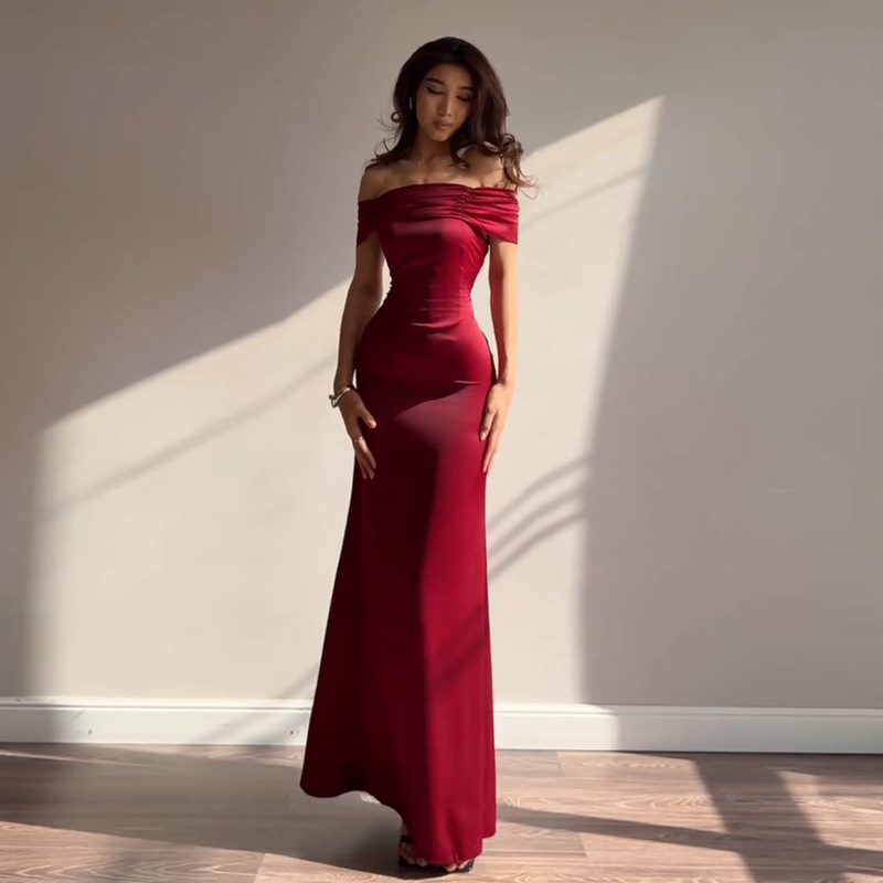 Classic Ladies’ Off-the-Shoulder Party Dress for Elegance